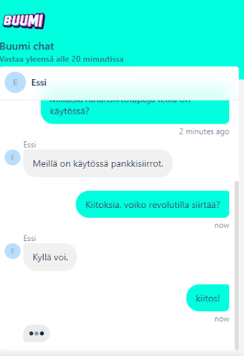 Buumi Casinolla maksutapana toimii Brite, jonka kautta voit maksaa suomalaisilla pankkitunnuksilla sekä Revolutilla.