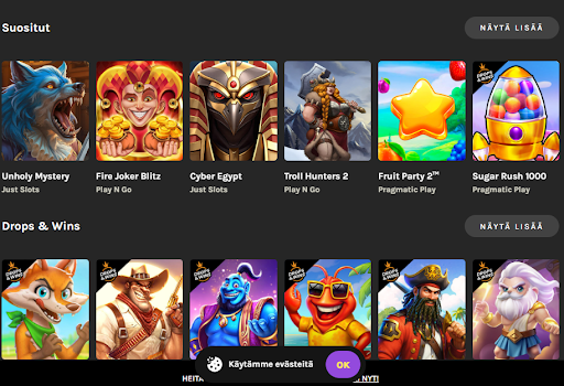 Tarjolla on paljon laadukkaita pelejä, kuten Sugar Rush 1000, Mental, Reactoonz ja Money Train 2, sekä hyvä kattaus uutuuksia ja muita mielenkiintoisia vaihtoehtoja. Pelaajille on myös tarjolla kätevä mahdollisuus kokeilla slotteja riskittömästi demo-tilassa.