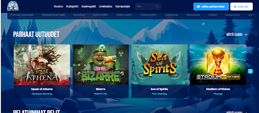 Etusivulla eri peliluokkien välillä on helppo liikkua selkeän ja horisontaalisen valikon ansiosta. Kategoriat kattavat kolikkopelit, pöytäpelit, livekasinon sekä jackpotit ja erikoispelit, ja jokainen osio on rakennettu tarjoamaan nopean ja vaivattoman pääsyn suosittuihin nimikkeisiin.