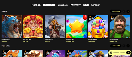 Testasin pelivalikoiman laatua pelaamalla useita slotteja. Pelit toimivat sujuvasti niin mobiililaitteella kuin pöytäversiossa. Kaikkiaan voin sanoa, että kasinopelaajalle pelivalikoima on erittiän hyvä, mikäli pokeri ja bingo ei ole mieleen.